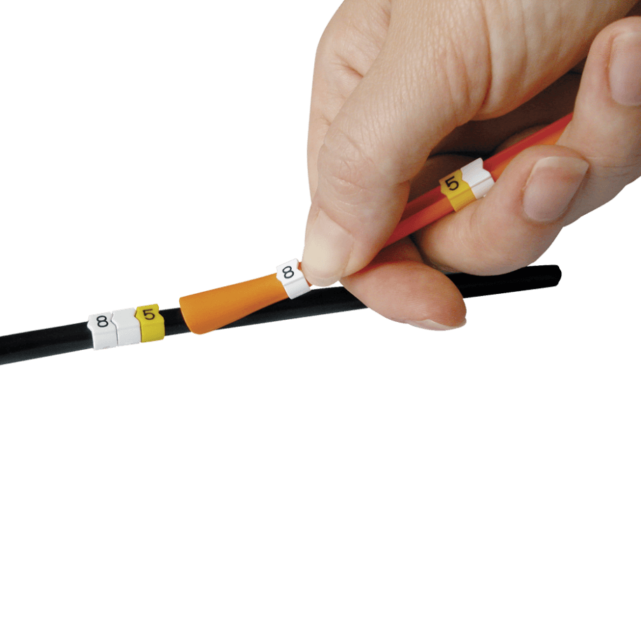 Push-on cable markers are used particularly frequently for wire identification in switch cabinet construction. Due to the slide-on installation method, these cable markers are mainly suitable for cables and cores that have not yet been installed. Cable markers with clips are an exception here. These can simply be clipped onto cables and wires.